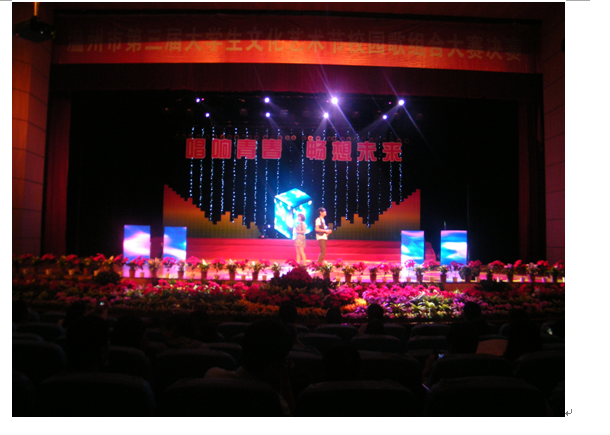 2012年5月16日晚,“唱响青春 畅想未来”温州市第三届大学生文化艺术节校园歌组合大赛(决赛)在我校大学生活动中心演艺厅拉开帷幕。温州市教育局高等教育处林成堂老师、段新明老师,JJGirls