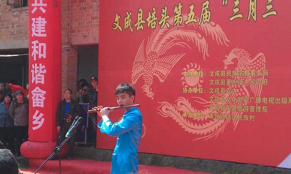 2012年3月22日,王文韬、王志毅副院长一行六人,受邀前往文成县黄坦镇培头民族村,参加“文成县培头第五届‘三月三’畲乡风情节”。期间,刘玉亭、易雄志两位老师的歌声及11级音本班陈立烜的笛声,迎来了村民及四方客人的阵阵掌声。