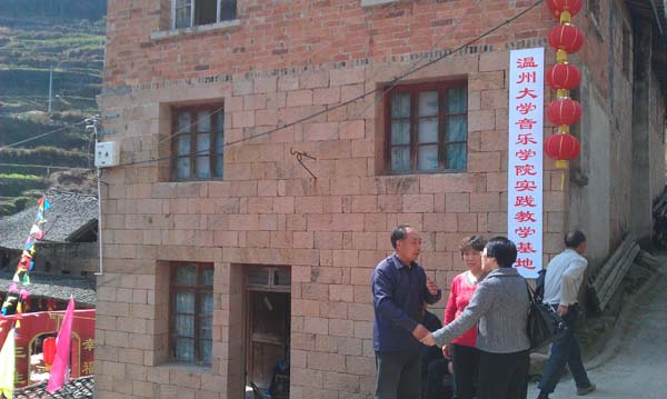 的教学、研究及实践,能更加贴近浙南这片有着丰富民间文化资源的沃土,学院决定在文成县黄坦镇培头民族村建立“实践教学基地”。2011年12月,基地在培头村顺利落成。陈立烜同学说:“竹林、溪水、鸟叫声与村民们纯朴的掌声交织在一起,这种感受在舞台上找不到。我以后还要来这里学习、实践,把我的笛声留给畲山。”