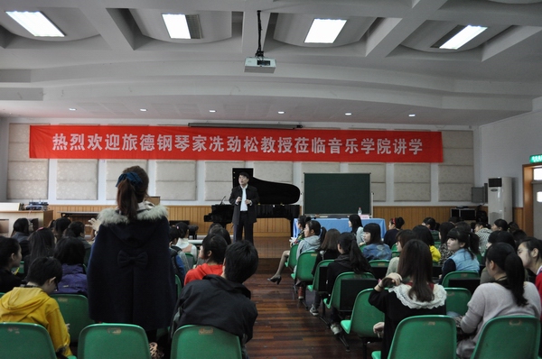 钢琴系主任陈思老师主持。这位对钢琴及钢琴教育怀有满腔热情的冼教授围绕着“钢琴演奏的正确方法”,为我们带来了一场精彩而有趣的讲座。