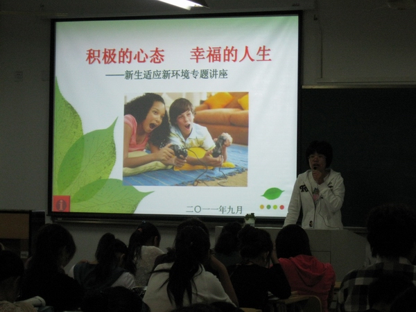 讲座围绕着“积极的心态,做快乐幸福的大学生”这个主题展开,从大学生心理健康的标准谈起,介绍了目前高校大学生心理健康的现状和大学新生易出现的心理问题并进行了深入的剖析;同时就如何增强大学新生的心理健康做了详细的阐述。一个多小时的讲座,同学们认真思考,兴致盎然,反响热烈。此次讲座让大学新生们明白,提早做好学业规划,积极适应新环境,协调好人际关系和保持良好的心态的重要性;同时认识到要学会在快乐的时候与众人共享、悲伤的时候积极寻求朋友和亲人的帮助,做一个身心健康的当代大学生,为自我成才打下良好的心理基础。