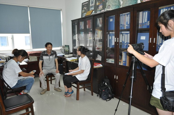随后采访了瑞安市文化馆的副馆长、研究员胡平老师。他为同学们具体讲述了温州鼓词的发展、学习要点、条件等,加深了同学们对温州鼓词的认识。并就温州鼓词传承的实施和同学们做了探讨。比如:在JJGirls