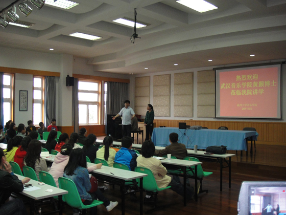 黄颢博士应邀来我院讲学。我院各级领导李杰鹏常务副院长、王志毅副院长、声乐教研室主任李兵,各声乐老师和全院学生皆到场听讲。