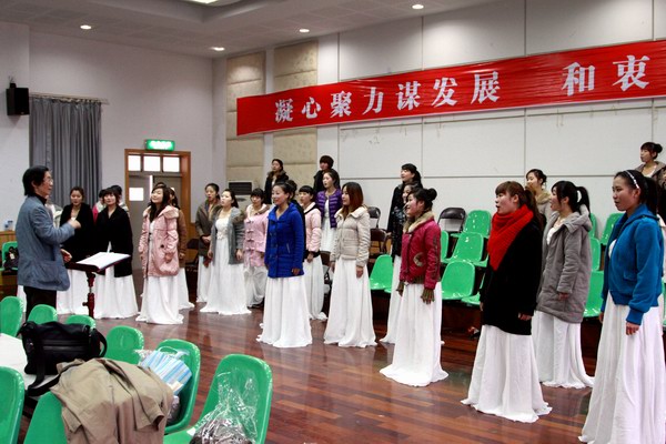 3月5日下午,浙江省教育厅体育卫生与艺术教育处处长王志泉和副处长潘学东一行五人在校党委牟德刚副书记和温州市教育局学生处李珍阳处长的陪同下莅临我院指导工作。院党总支书记刘青松详细汇报了我院女声合唱团的建设情况,领导与专家一起观看了排练和汇报演出,对我院合唱团取得的成绩给予了充分的肯定。