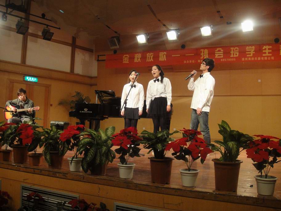 瓯江学院的三人组也为这次的比赛增添了一份别样的色彩,他们为我们带来的是:吉他伴奏,男女生三人小合唱《同桌的你》 。