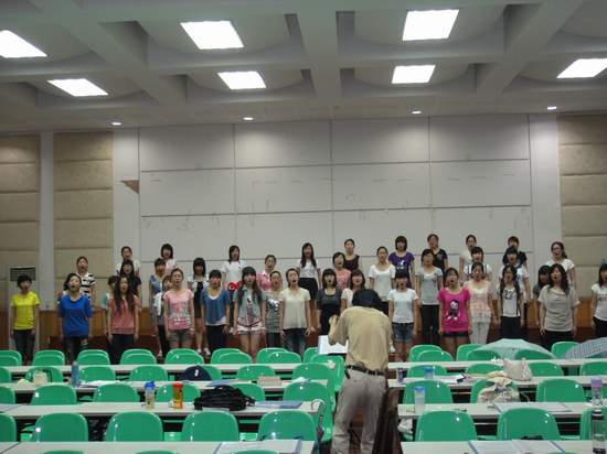 合唱队将代表学校于七月中旬赴绍兴参加世界合唱比赛。为此,我院领导高度重视,早早做了周密的部署,并经常抽空亲临现场慰问指导。师生们牺牲了大量业余时间,早早投入到紧张的排练中。文/马鹰奇