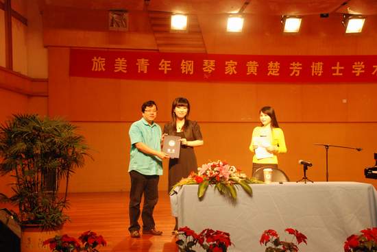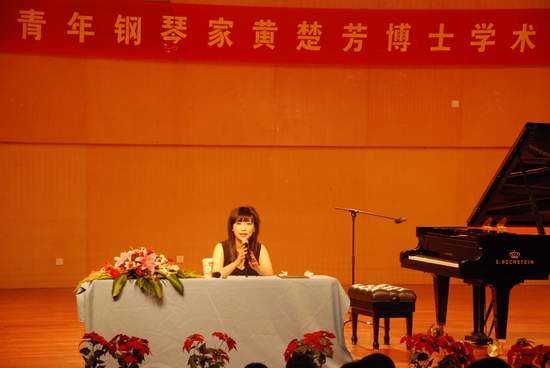 随后,黄楚芳博士为我院师生做了题为“欧美钢琴教育现状”的精彩讲座。黄博士从自身的学琴历程说起,并为大家演奏了两手动听的钢琴曲,分别对我院金婷婷同学弹奏的《肖邦圆舞曲Op18》和王旻驹同学的《肖邦练习曲Op10 No8》表示肯定并进行了点评。师生们踊跃发言,就如何提高钢琴演奏水平等问题与黄博士形成了有效的互动,气氛热烈。师生们纷纷表示,此次讲座受益匪浅。文/马鹰奇