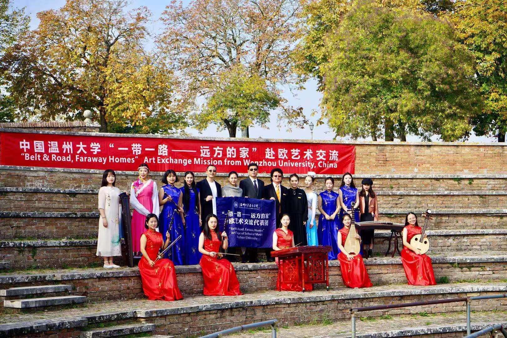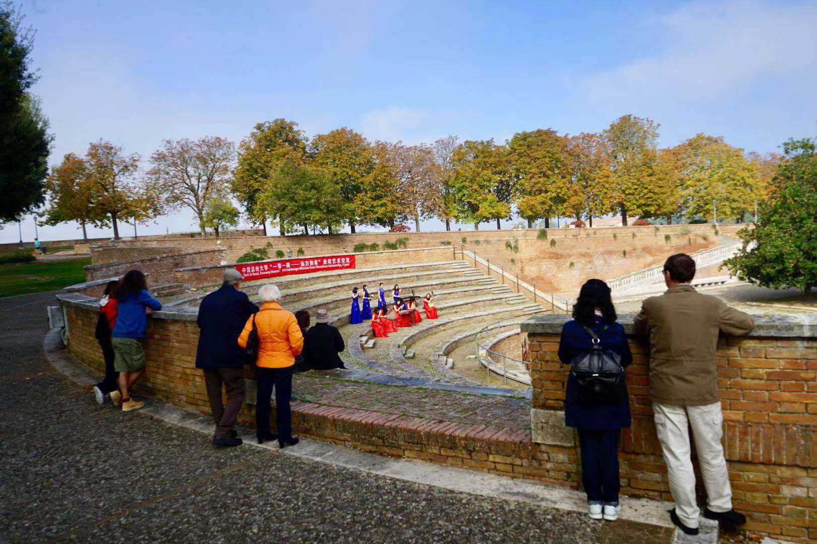 师生进行了互动交流。并在锡耶纳古城墙为意大利市民和游客进行了快闪表演,引得阵阵掌声。