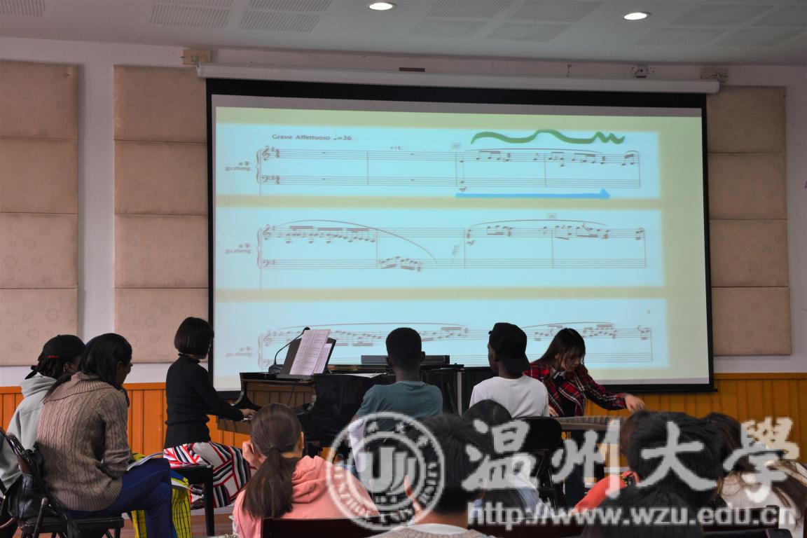 音乐楼201开展了阮辛怡老师的留学生观摩课"Chinese Traditional Music Appreciation".