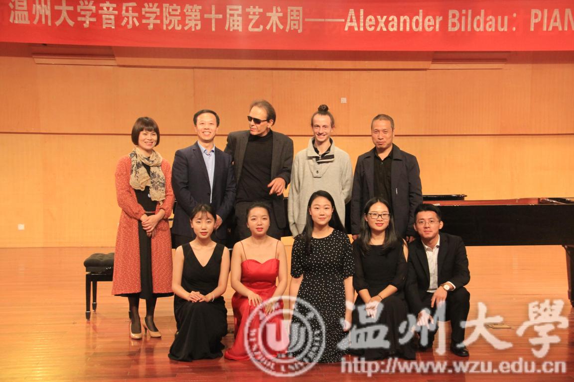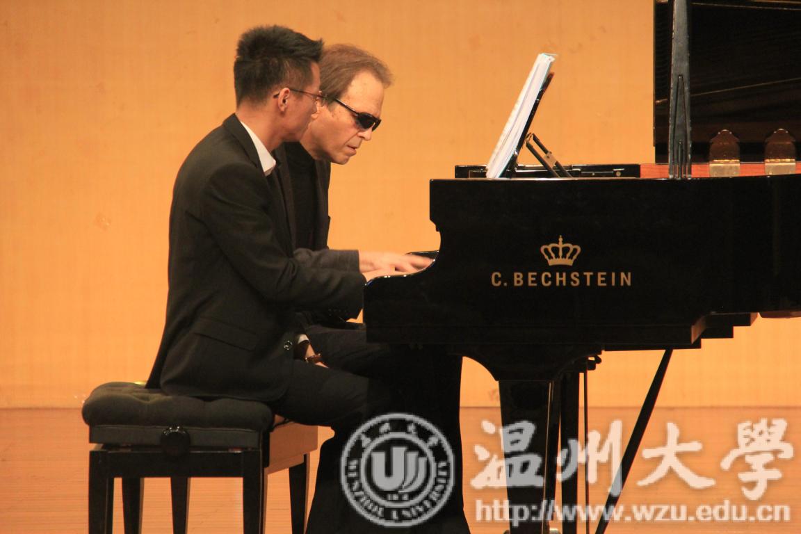Alex教授十分热爱中国民族音乐,并通过西方作曲家的艺术审美视角诠释中国音乐文化的精髓。音乐会一开始,Alex教授的学生便演奏了《假面舞会随想曲FP155》,这首曲子有一种直觉之美、一种精神层次之美,也许这首乐曲在风格上并不符合一般人的审美观,可是却依然能够让人感动、震撼,这就是它的神奇之处。接下来,一首《叶戈罗夫变奏曲》,在旋律音与旋律音之间,加进了装饰音,把原来的旋律装饰得更加流利欢畅,令人神往。随后,Alex教授演奏了《四首钢琴奏鸣曲FP8》,这首曲子风格热情、典雅,充满了欢乐、幸福、和平的气氛,就像优美的田园诗一样。演奏完毕后,Alex教授也非常热情地与台下的观众互动,现场气氛十分活跃。最后,一首 《 钢琴奏鸣曲FP156第二乐章》,这首曲子节奏型上采取了一定的变形,在精致的前半段中,将其巧妙地镶嵌在新的旋律线条中。旋律部分在左手的和弦上稍做停顿后,轻轻加上了细微的音程,令人听起来有一种浅浅吟唱的意味。一首一首曲子下来,台下的观众都陶醉在音乐之中。