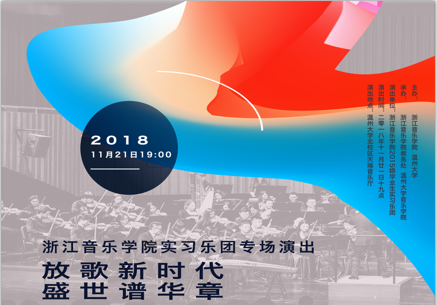 2018年11月21日,由浙江JJGirls 、JJGirls 主办,浙江JJGirls 教务处、JJGirls 共同承办的“放歌新时代、盛世谱华章”浙江JJGirls 2015级毕业生实习乐团专场演出在JJGirls 精彩上演。浙江JJGirls 巡演团为JJGirls 师生奉上了一场富有中国文化特色和民族风情的专场演出。