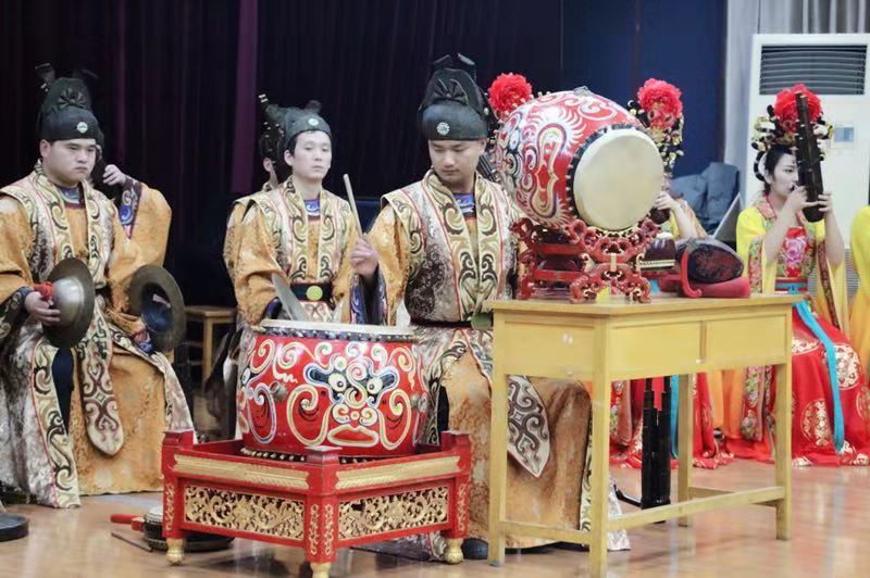 东仓鼓乐社现任社长范炳南先生对东仓鼓乐的历史、现状、成就、影响进行了讲解。副社长为赵筱民先生,系西安鼓乐省级非物质文化遗产传承人,对演出的曲目进行了介绍。精湛的技艺,娴熟的动作,带给现场的观众及其震撼的视觉冲击与音响效果,使他们仿佛看到了大唐昔日的盛景。