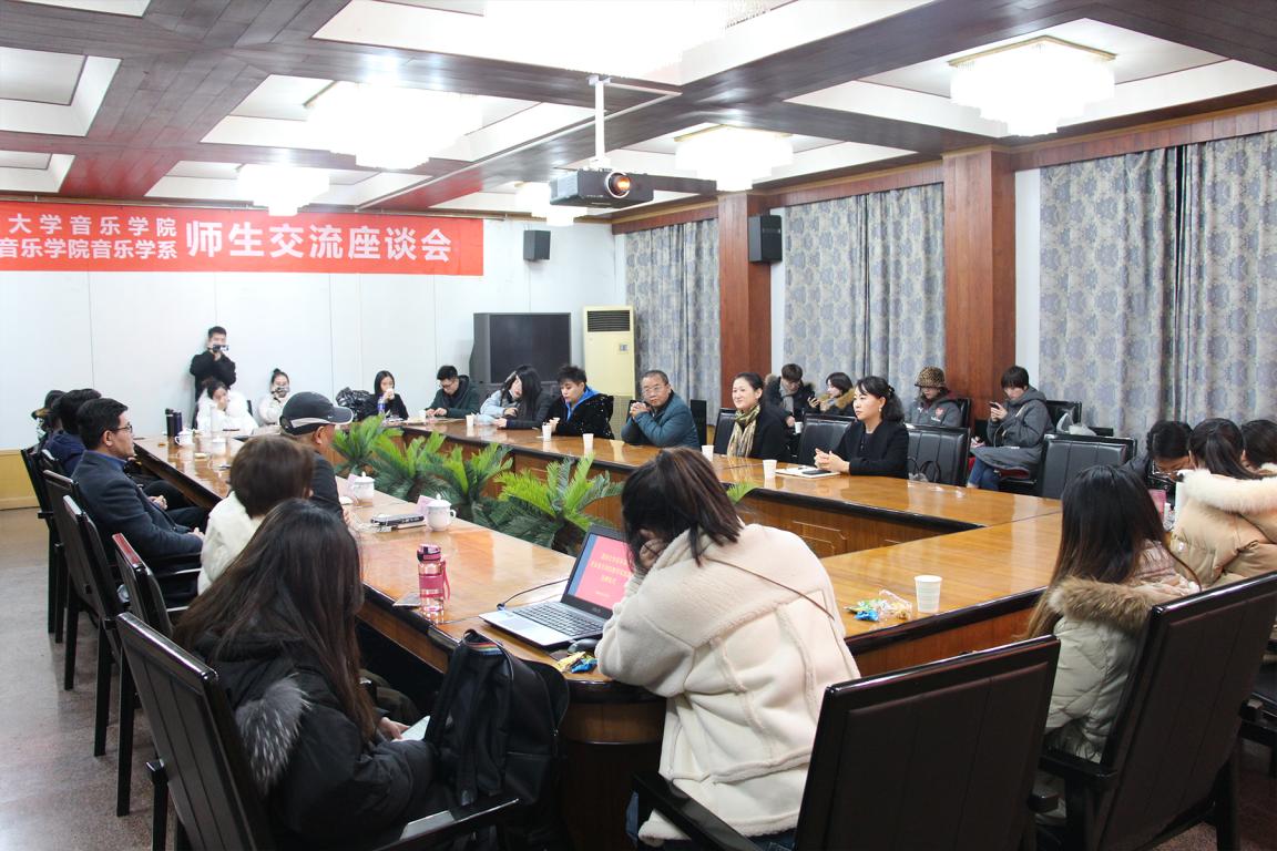 钢琴系主任李佳教授,舞蹈系主任李颖教授等人与我院研究生导师冯百跃教授,刘玉亭副教授,叶文辉副教授等进行了深入的交流座谈会。
