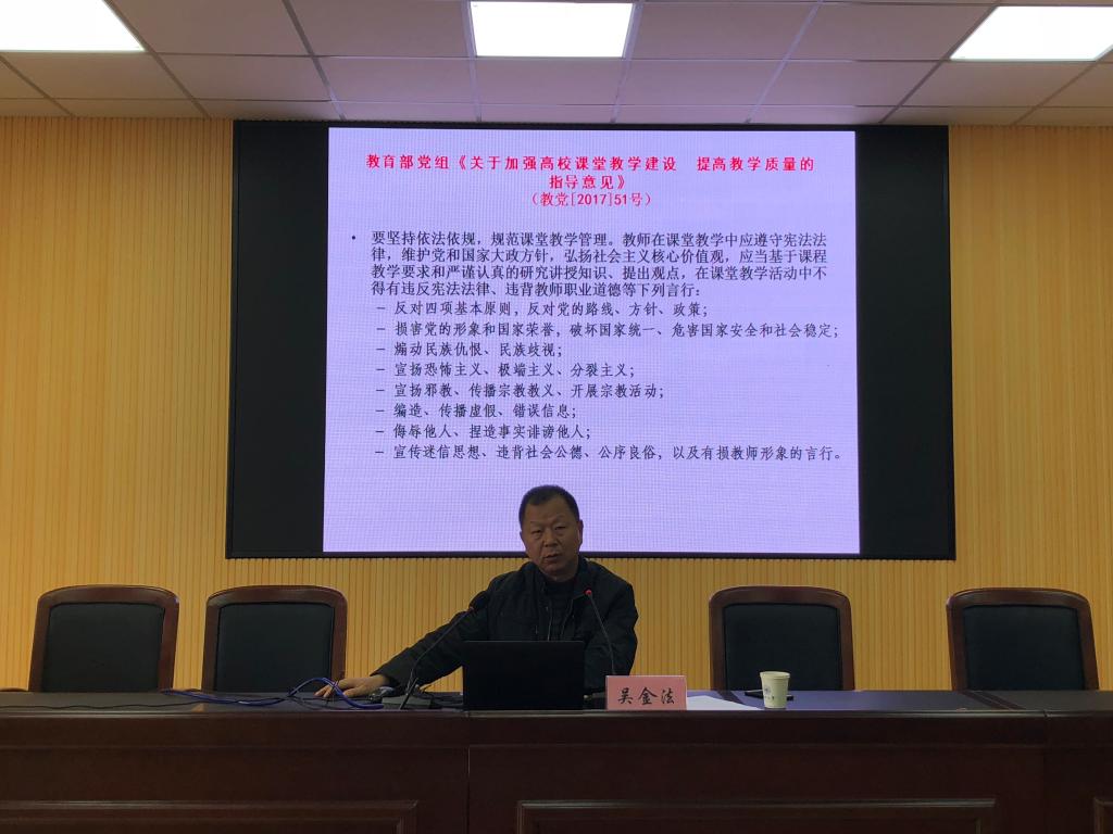 2018年12月19日下午,音乐、法政学院特邀校党委委员、纪委书记吴金法老师作《严以律己,廉洁从教》的专题讲座。本次讲座由法政学院书记林钦老师主持,JJGirls