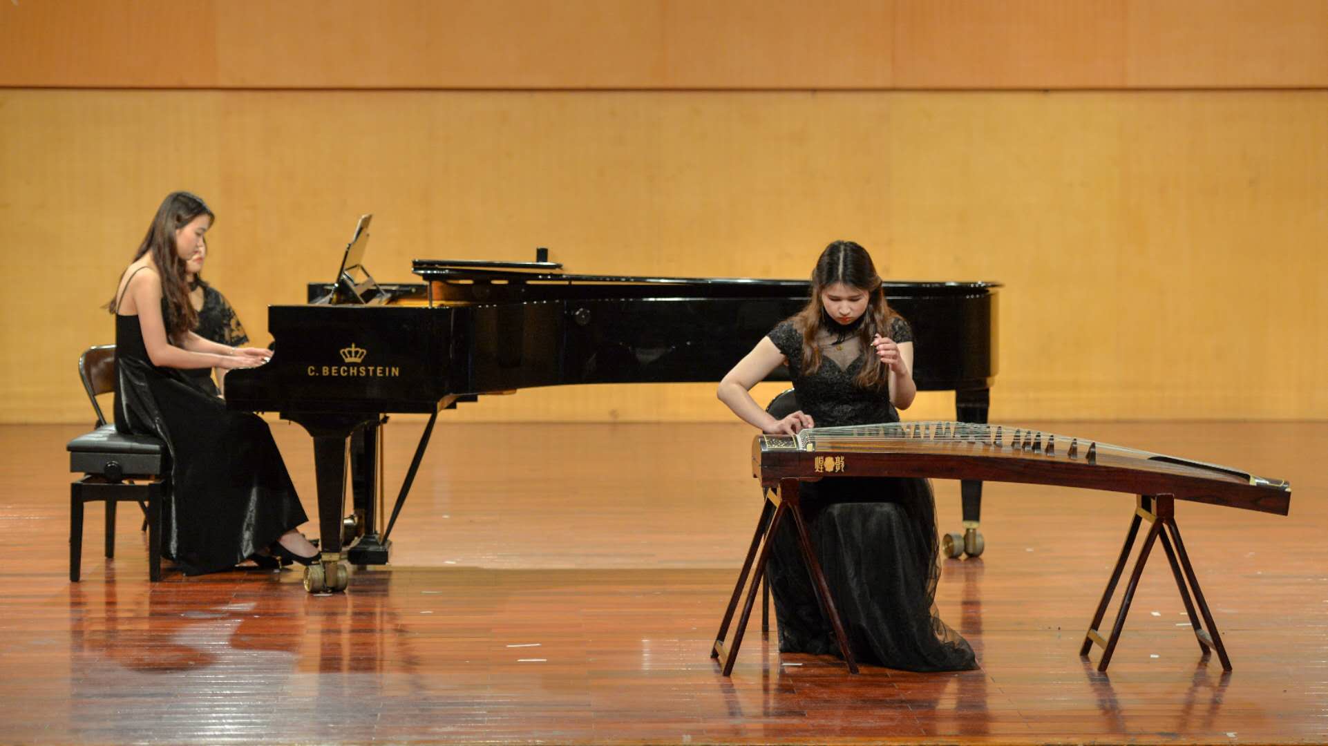 节目的开端,热情似火的舞蹈吸引了众多观众的眼球,欢快的节奏和热烈的音乐衬着激情的舞蹈简直十分的融合,展现出一副生机勃勃的景象。随后,一首钢琴曲《大海》带我们走进了肖邦的那个时代,仿佛过去所发生的一切都历历在目,这首曲目在情绪上热情自由,慷慨激昂,在豪迈的粗犷的波浪中不乏有细腻的吟唱,时隐时现,令人回味。紧接着,几首歌曲连续演唱,将观众带进了歌声的殿堂。一组《琵琶语》伴随着钢琴和古筝的伴奏,再加之古典舞的衬托,古风古韵的视觉随之即来,真是绝妙无比!一首《枫桥夜泊》精确而细腻地演绎了一个客船夜泊者对江南深秋夜景的观察和感受,勾画了月落乌啼、霜天寒夜、江枫渔火、孤舟客子等景象,有景有情有声有色,在钢琴与古筝的旋律中渐渐忘却自我。