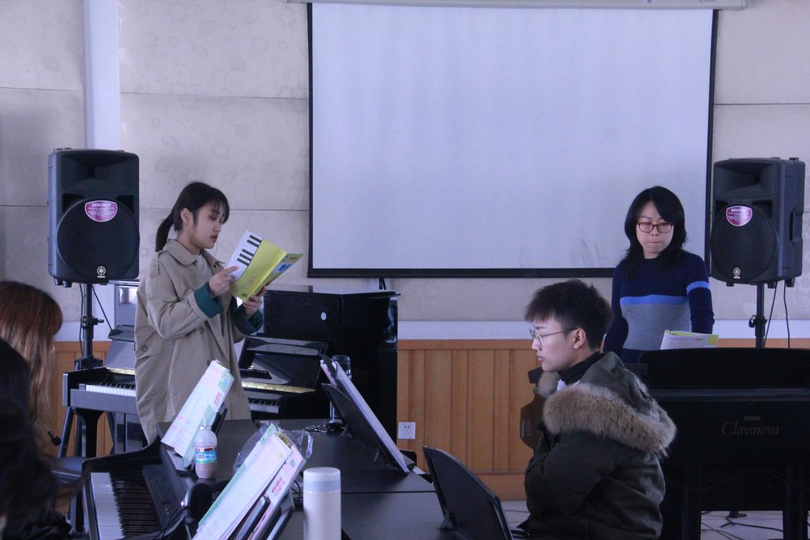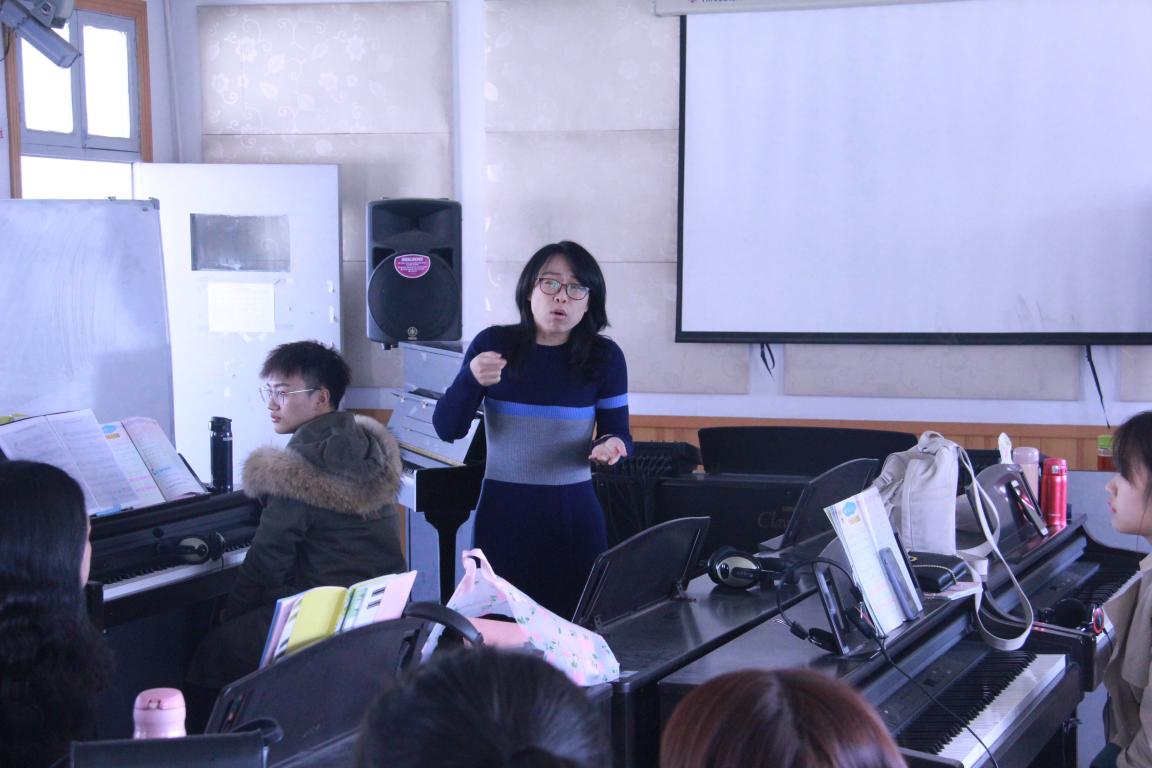 首先是蔡军老师带来的“乐理与视唱练耳实践课程”。乐理、视唱与听音可以说始终伴随着我们的音乐之路,几乎每个学习音乐的学者每天都会用到。乐理是音乐学习的基石,没有乐理知识的支撑可以说一切都是空谈,其重要性不言而喻。视唱和听音也是对一个乐者基本素养的考验,这三者在运用时相辅相成,缺一不可。本节课堂将这三者结合运用在实践之中,帮助同学们巩固了基础知识,让同学们在追求音乐作品时,不忘记最基本的功底。接下来是严伊娴老师的“即兴钢伴与演唱”。如果说上一节课是理论与实践的综合,那么这一场可以说是真正的实践课堂。即兴伴奏在未来的音乐实践中占据了很大一部分比重,可以说是运用的最多的一项技能。对于未来将要从事声乐教育的同学们,即兴伴奏无疑更是重中之重。这节课堂,严伊娴老师以音乐课本为例为同学们分析了几种即兴伴奏的形式。最后是吴春艳老师的“音乐教学论与教材教法实践课程”。本届课堂为我们介绍了课本教材的一些基础内容、教学方法以及为人师表的一些基本职业操守。也许我们已经具备了教学的基本理论知识,但是教学实践与知识完全不同。通过几位同学“模拟课堂”的环节,吴春燕老师为我们讲解了如何教学、通过什么样的方式去教学等。