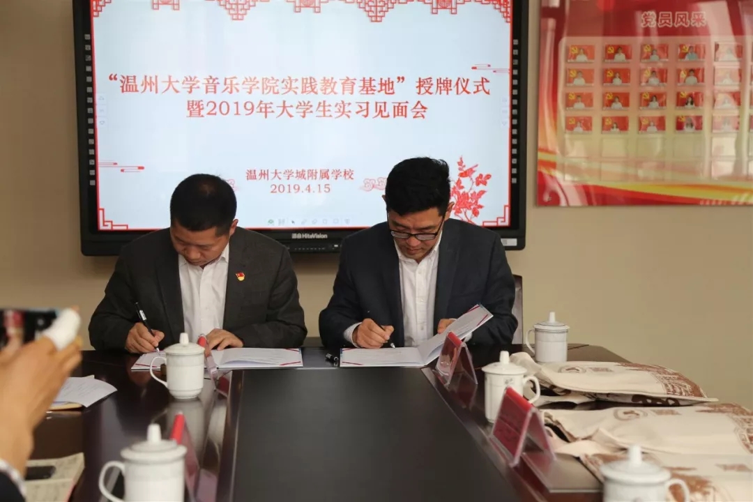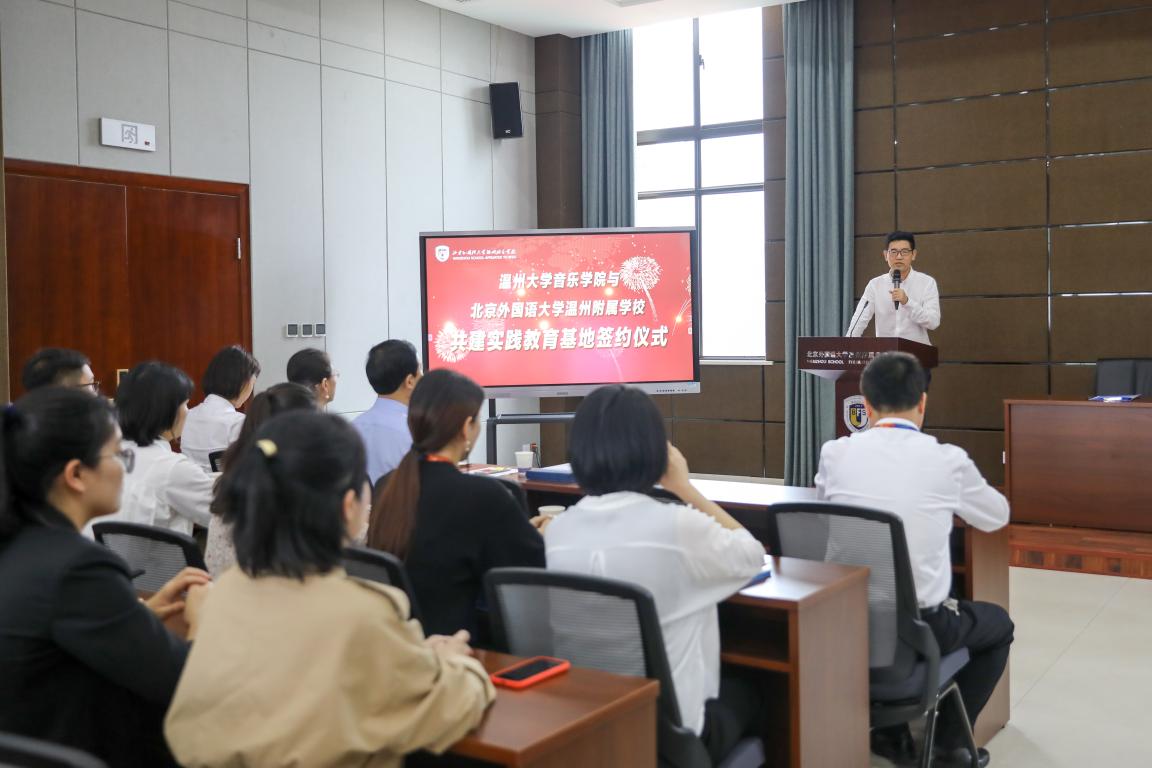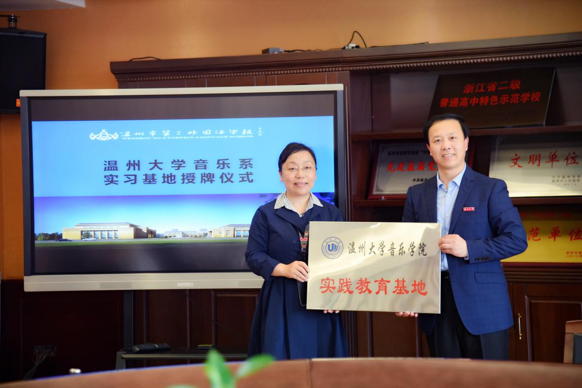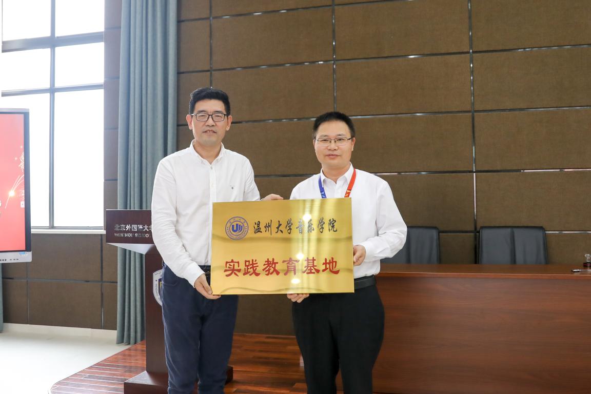 4月26日上午,赵玉卿院长一行赴北京外国语大学温州附属学校签订实践教育基地协议并授牌。