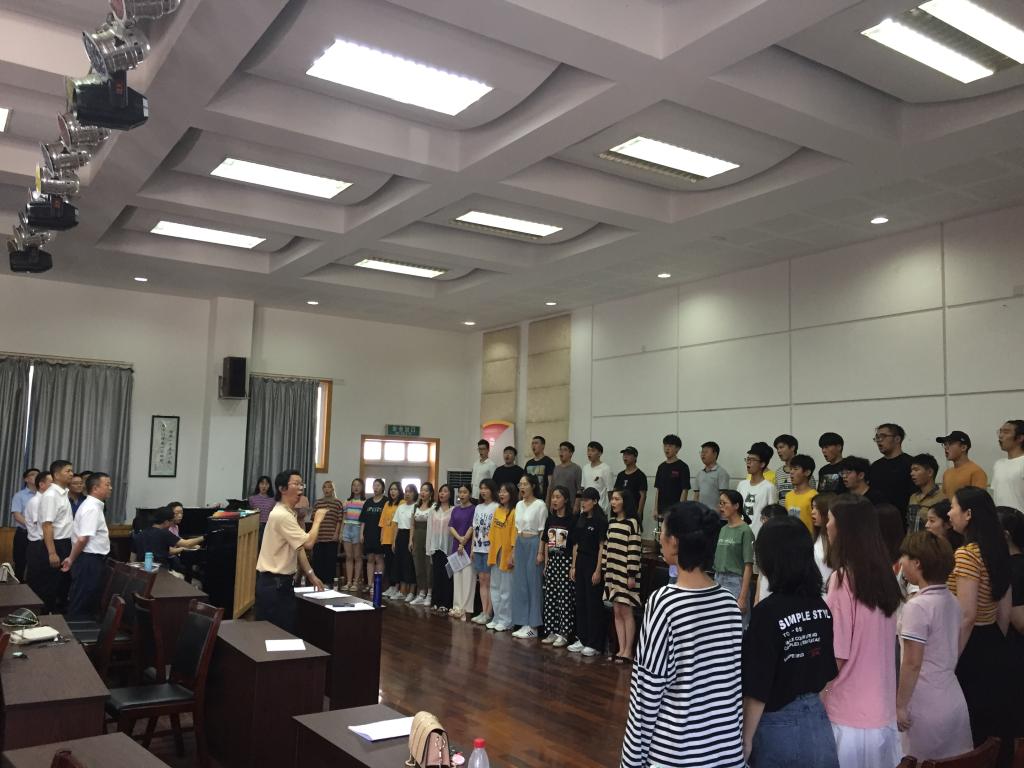 在音乐楼,谢书记一行观看了合唱团的排练情况,对在炎炎夏日仍坚持排练的师生表示亲切慰问,也给予了充分的肯定,同时勉励JJGirls