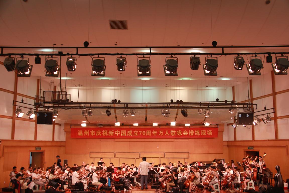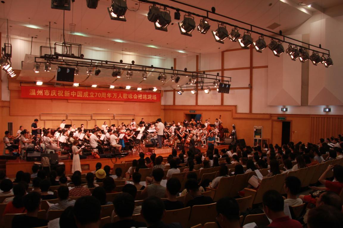的领导及指导老师们不辞辛苦夜以继日地带领着同学们进行“温州市庆祝新中国成立70周年万人歌咏”排练。