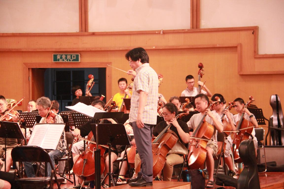 的领导老师早早来到了现场。为确保排练万无一失,老师同学们忙前忙后尽量不放过一丝细节,排练开始一小时前,现场就已经被有条不紊地布置完毕。随着合唱团演员以及乐队演员陆续到场,排练正式开始。一曲《不忘初心》让在场人员想起习近平总书记“不忘初心,牢记使命”的重要讲话。乐队以及合唱团员们以细腻的情感和辉煌的气势完美演绎了歌曲的精髓。气吞山河的《强军战歌》磅礴气势喷涌而出把排练带入高潮。在指挥老师的带领下,整个乐队、合唱团和领唱们配合十分默契,以精湛的技巧激情饱满地唱出了军人应有的挺拔雄姿,坚韧顽强不正是中国军人的初心与使命吗?