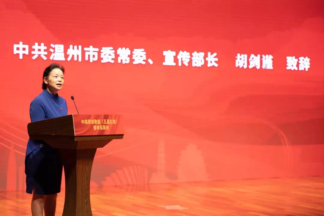 市委常委、宣传部长胡剑谨表示,歌剧《五星红旗》是一部聚焦“不忘初心 牢记使命”主题的爱国主义教育剧,希望通过创作这样一部原创歌剧,让更多人了解熟知国旗背后的革命故事,这也是当前对党员干部“不忘初心 牢记使命”最生动的一堂爱国主义教育课;歌剧《五星红旗》是一部全面展示温州红色文化内涵的城市形象宣传剧,希望通过创作这样一部原创歌剧,把一个全面立体、历史厚重的温州展示出来,让更多人知道,温州不仅是民营经济的高地,是革命精神的高地,也是文化建设的高地;歌剧《五星红旗》是一部为民惠民的文化普及剧,希望通过创作这样一部原创歌剧,进一步宣传和普及歌剧艺术,不断丰富温州市民精神文化生活。