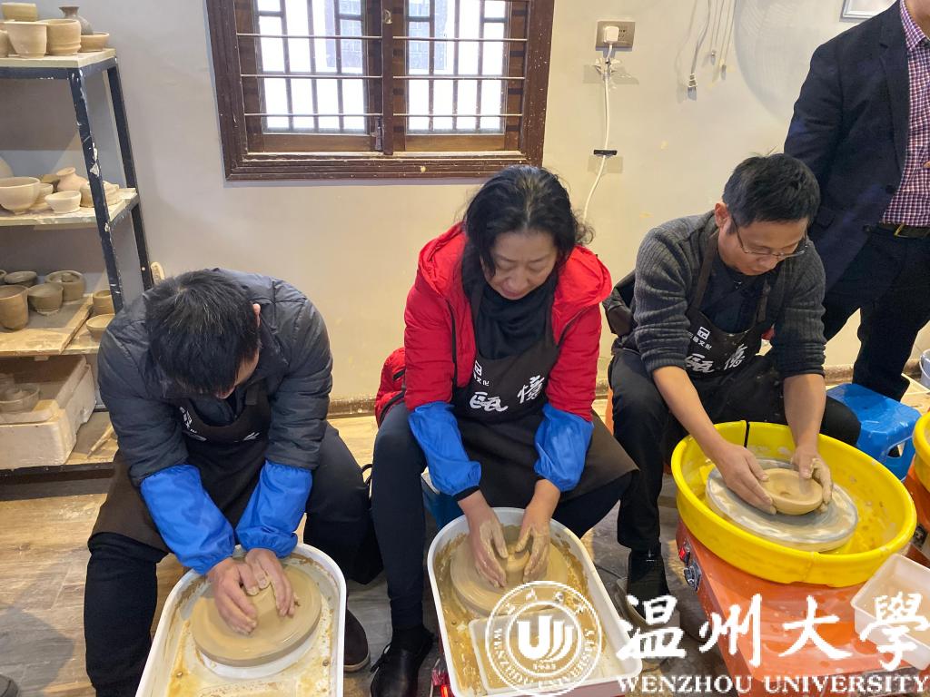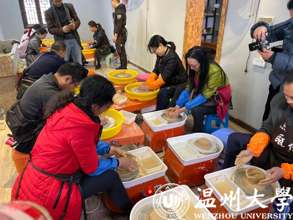 参观完永嘉楠溪江苍坡古村,全体教职工又来到了永嘉瓯窑小镇参观,并体验当地的手作(陶瓷)。