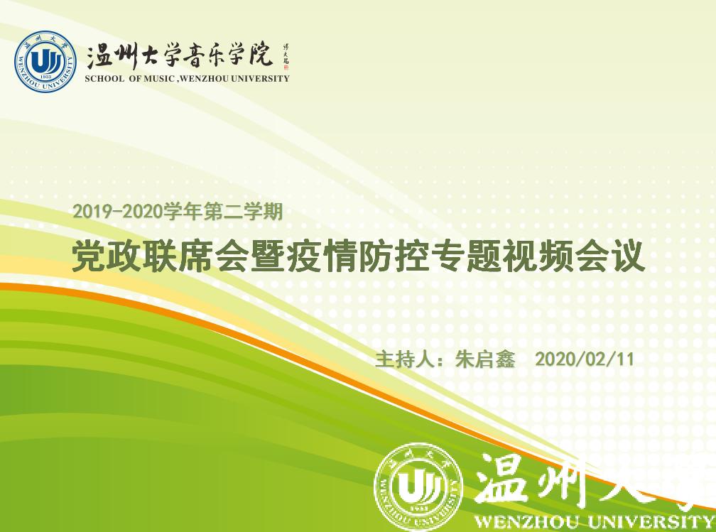 最后学院院长邹跃飞总结讲话。邹院长表示,疫情防控工作是当下所有工作的重中之重,在接下去的关键期,更要严格抓好学院师生疫情防控工作,确保全院师生在疫情解除前不返温、不返校,全力打赢这场防防御阻击战;同时要安排落实好教师、学生的线上教学各项工作,提早做好师生的摸底工作,做好各种预案,确保特殊时期教学工作顺利、等效开展。学院将于2月中旬召开全院教职工视频会议,部署落实各相关工作。