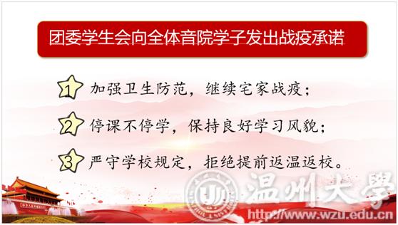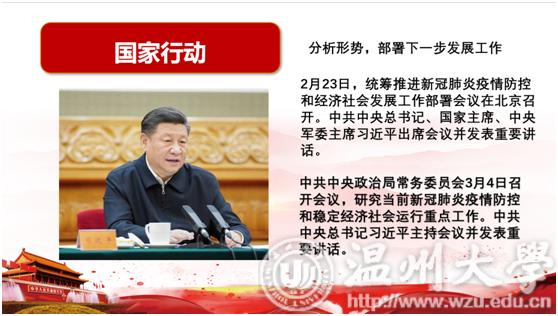 接下来是会议的第二项议程——战疫情,心连心。共分为四个部分,分别是国家行动、温大行动、音院行动以及战役承诺。