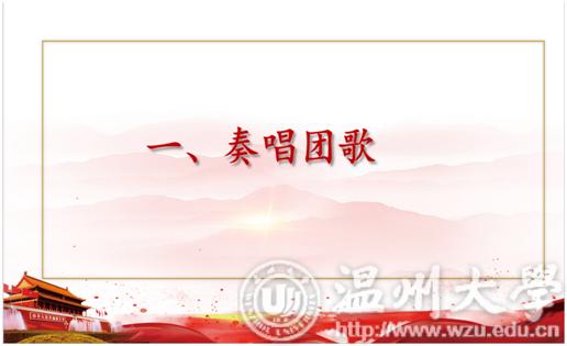 团委学生会主席王奕宁的带领下,各位部长与老师共同演唱团歌。