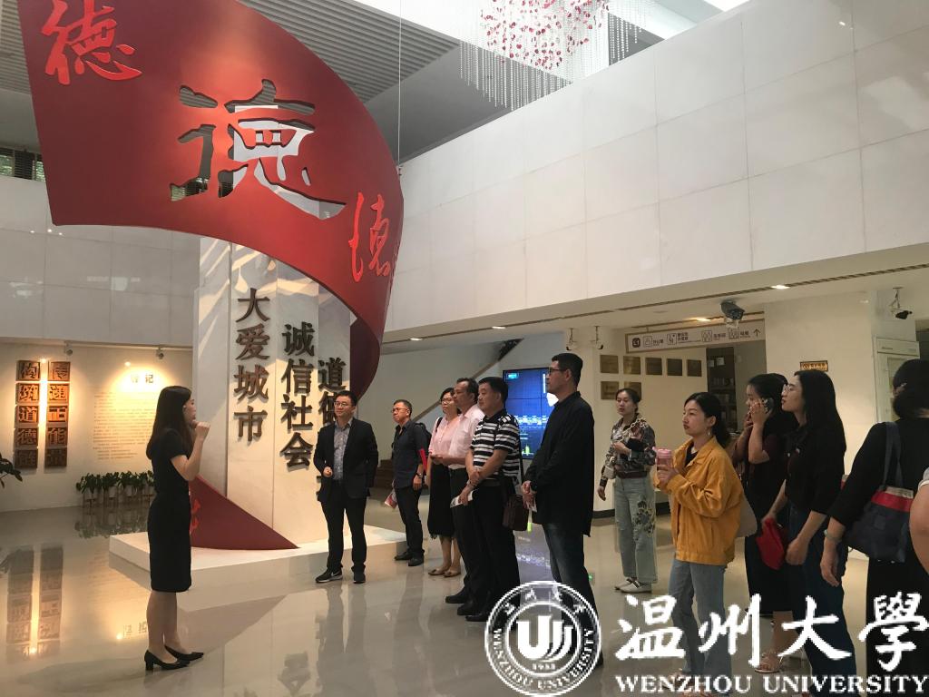 温州道德馆共分为主展厅、道德讲堂、道德养成厅、临展厅等四个区域,跟着讲解员的足迹,党员们通过参观饱览温州历史文化名人的资料,了解到温州籍的两院院士、数学家、教育学家的历史和故事,体会到温州好家风、兴学重教的好传统;通过回顾温州志愿者开荒的艰苦岁月,领略了温州“红马甲”的渊源,同时,党员们也纷纷为温州志愿活动点赞;通过“温州市道德模范”、“最美温州人”“感动温州十大人物”“温州好人”等道德故事展示,党员们更加深入的感受到温州道德活动品德凸显、道德队伍阵营强大、道德阵地全面覆盖。