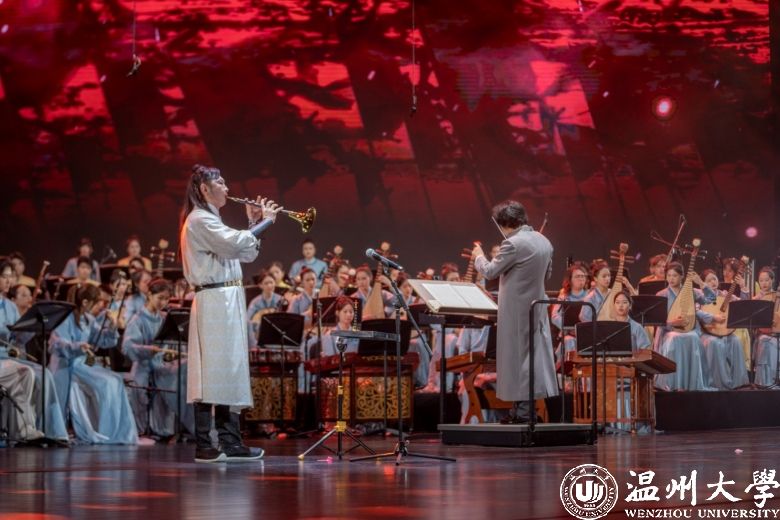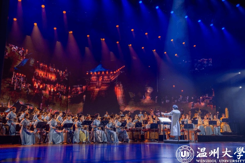 《千年宋韵·海丝寻音》是温州市文化艺术发展基金2023年度重点资助项目,更是温州首个以宋韵文化为核心主线打造的大型舞台音乐文化创新工程。项目自2022年启动,历经近两年的精心筹备,旨在通过民族管弦交响音乐会这一高雅形式,向世界生动展示中华民族的文化自信、瓯越大地的独特文脉、时代的人文精神以及人民对幸福生活的追求。它的成功创演,填补了温州在大型民族管弦乐原创领域的空白,成为全省推动宋韵文化实现“流动传承”的一份鲜活的地方实践样本。