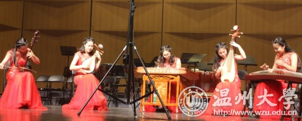 选送的女子乐坊《映山红》由青年教师严伊娴编导,徐苓铱、杨日西、张婕、倪茜、沈贤惠等青春美少女共同演奏,汇聚了琵琶、古筝、扬琴、柳琴、二胡等民族乐器,赋予了红色经典《映山红》全新的青春美感和时代激情,在本次大学生艺术节大放异彩,得到了评委会的高度评价,获得器乐乙组一等奖。