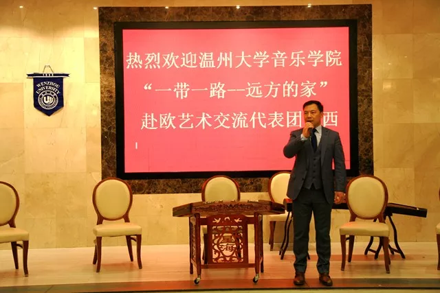 “一带一路——远方的家”赴欧艺术团访西表示欢迎和感谢,并肯定了旅西侨胞取得的优异成绩,以及“温商精神”在侨界发展中的支柱作用,最后强调了文化互通在华侨侨胞真正融入西班牙社会的重要性。他在发言中称:“最近几年,在侨团的带领下,侨界举办文化活动的氛围非常浓郁。我衷心希望,今天的表演能够成为弘扬和推广中华文化的契机,旅西华侨华人能够在今后的中华文化推广事业上取得更加优异的成绩。”