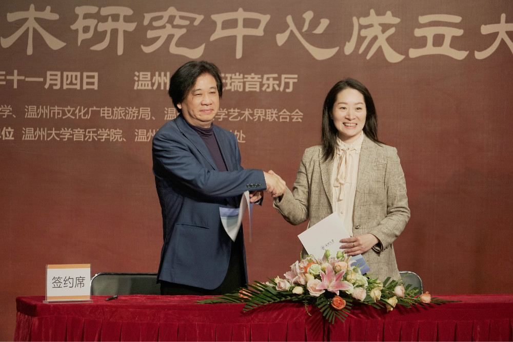 成立仪式上,“天瑞”表演艺术研究中心主任邹跃飞与温州市文化馆馆长施丽君签署了合作协议,将开展“文化驿站——名师讲堂”等系列活动。