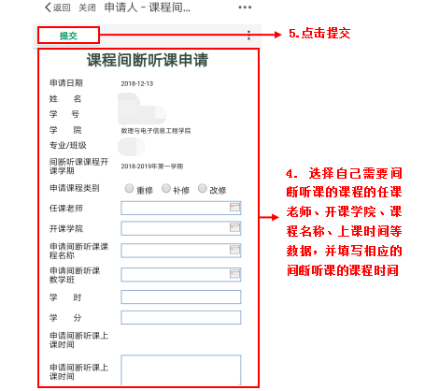 教务处间断听课申请,在线提交申请流程!再也不用跑啦!