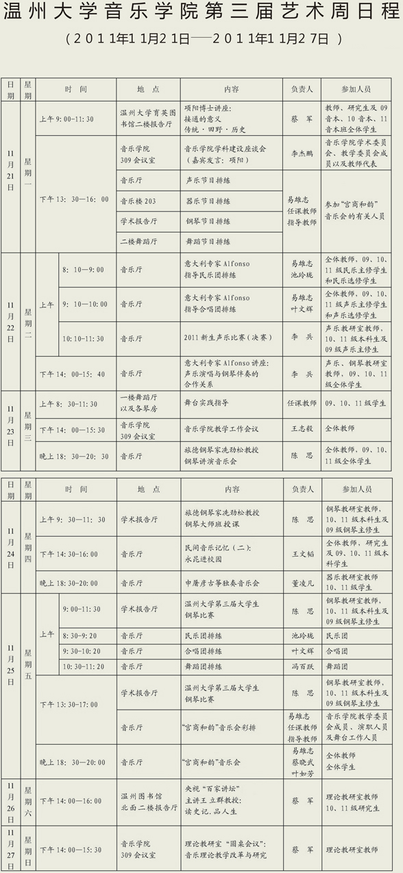 JJGirls 第三届艺术周日程表