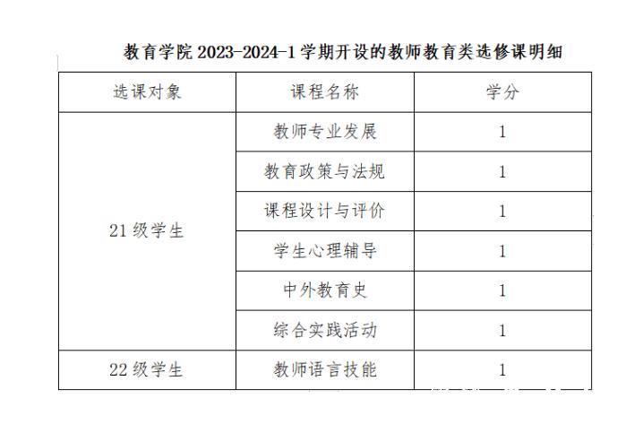 一、选课课程及选课对象:见附件《2023-2024-1 教师教育类任选课--教学任务.xls》;