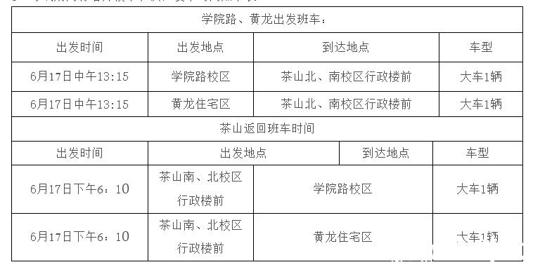 5、考试期间将增开校车班次,发车时间如下表: